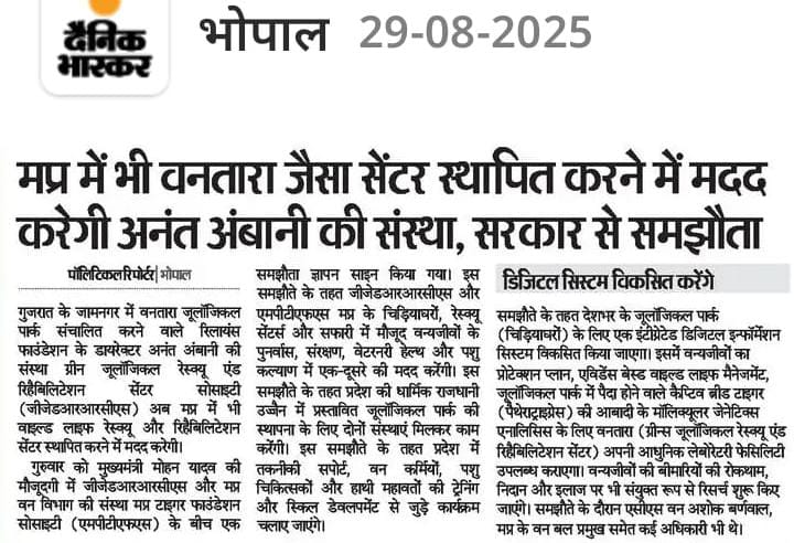 वंतारा पार्क का संचालन करने वाली संस्था को दिया है.करीब 80 एकड़ में आकार लेने वाले पार्क पर 300 करोड़ खर्च का अनुमान है.वन विभाग ने 25 करोड़ मंजूर भी कर दिए हैं.मुकेश