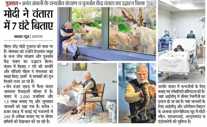 मुकेश अंबानी द्वारा निर्मित,तिस पर पर गुजरात में आबाद वंतारा पर भाजपा मुख्यमंत्रियों