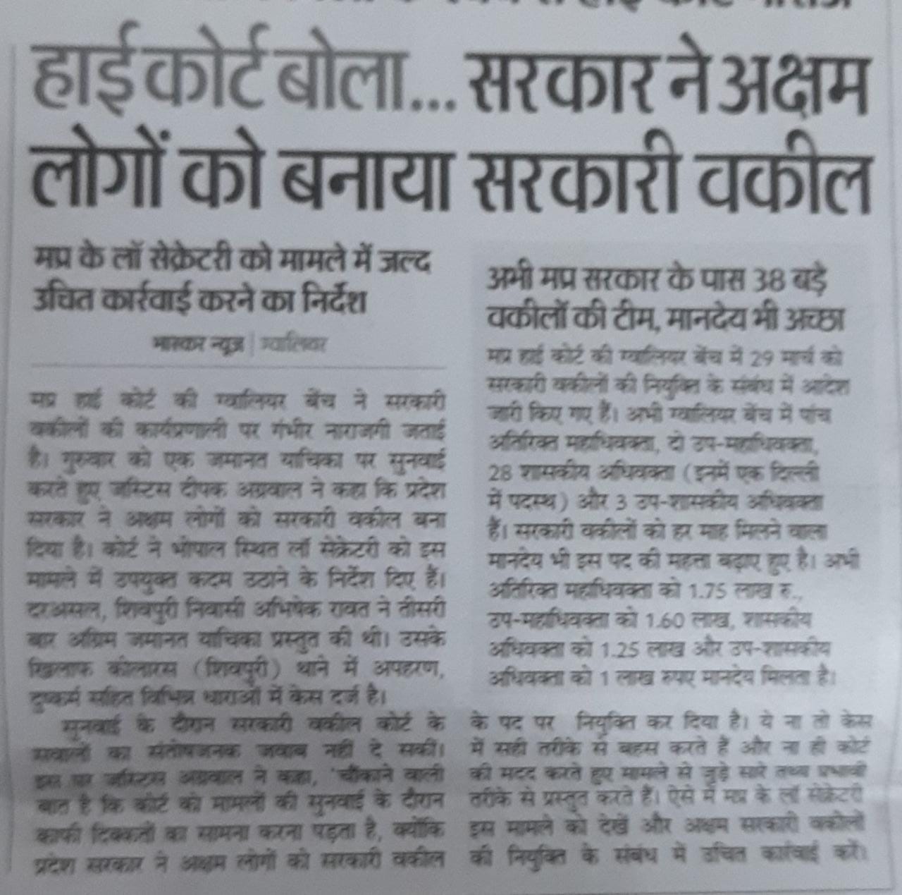 निकम्मे सरकारी वकील मध्यप्रदेश की करा रहे फजीहत